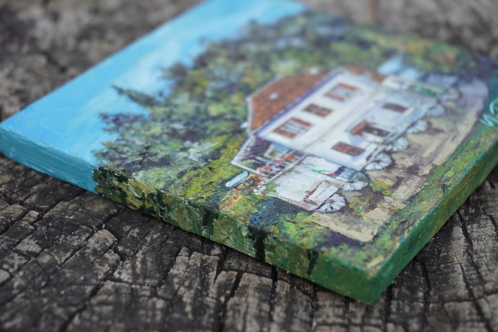 This painting is the result of that reflection—a tribute to the beauty of a house and the extraordinary memories it holds. I wanted the colors to feel calm yet vibrant, the composition to invite you in, and the brushstrokes to carry a sense of time passing gently. I especially enjoyed painting the mini Italian flag.🇮🇹