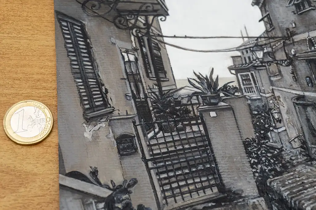 Boccadasse is a small fishing village on the Ligurian coast, full of charm and character. Whenever I am there, I feel a deep sense of serenity. Coming up these steps, with each movement upward, it’s as if I’m gradually arriving at that peaceful state. There’s something about the physical act of climbing—like you have to do something to reach the calm—that makes the moment more meaningful. Through this painting, I wanted to share that feeling.